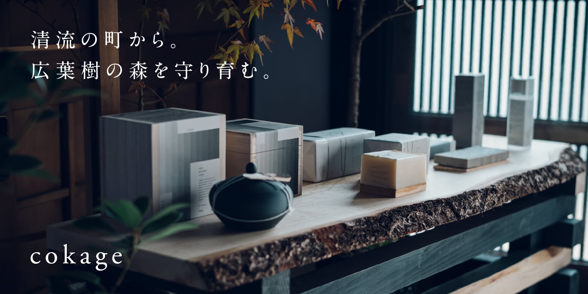 豊かな自然の中、自然と生きる大台町だからこそ伝えられること。それは、森や水があるからひとの営みが生まれ、その営みがあるから自然を受け継いでいけるということ。「cokage」は木が作る日よけです。豊かで多様な広葉樹の森を拡大することを目的に私たちの生活の中で林産物を活用する方法としてこのブランドを作りました。