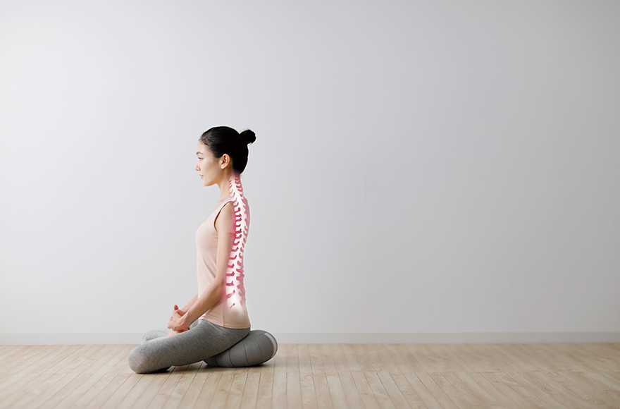 「ZAF」は独特の堅さと側面のヒダにより骨盤をしっかりと支え、ヒダが広がることで座る人の骨盤に適した角度に変形します。両ひざ下を地面に着け、お尻と三点で身体を支えることで自然なS字背骨を促し、坐禅・瞑想・マインドフルネスにおける正しい姿勢をサポートします。