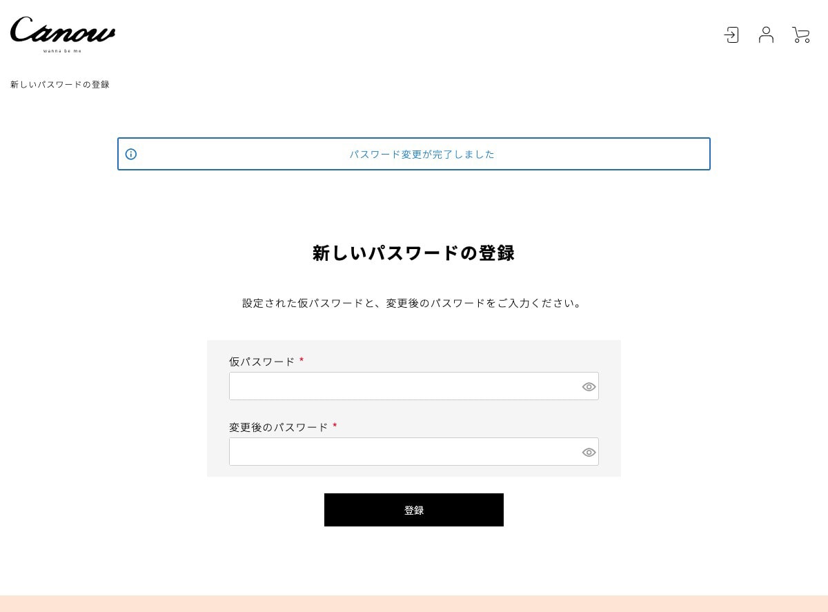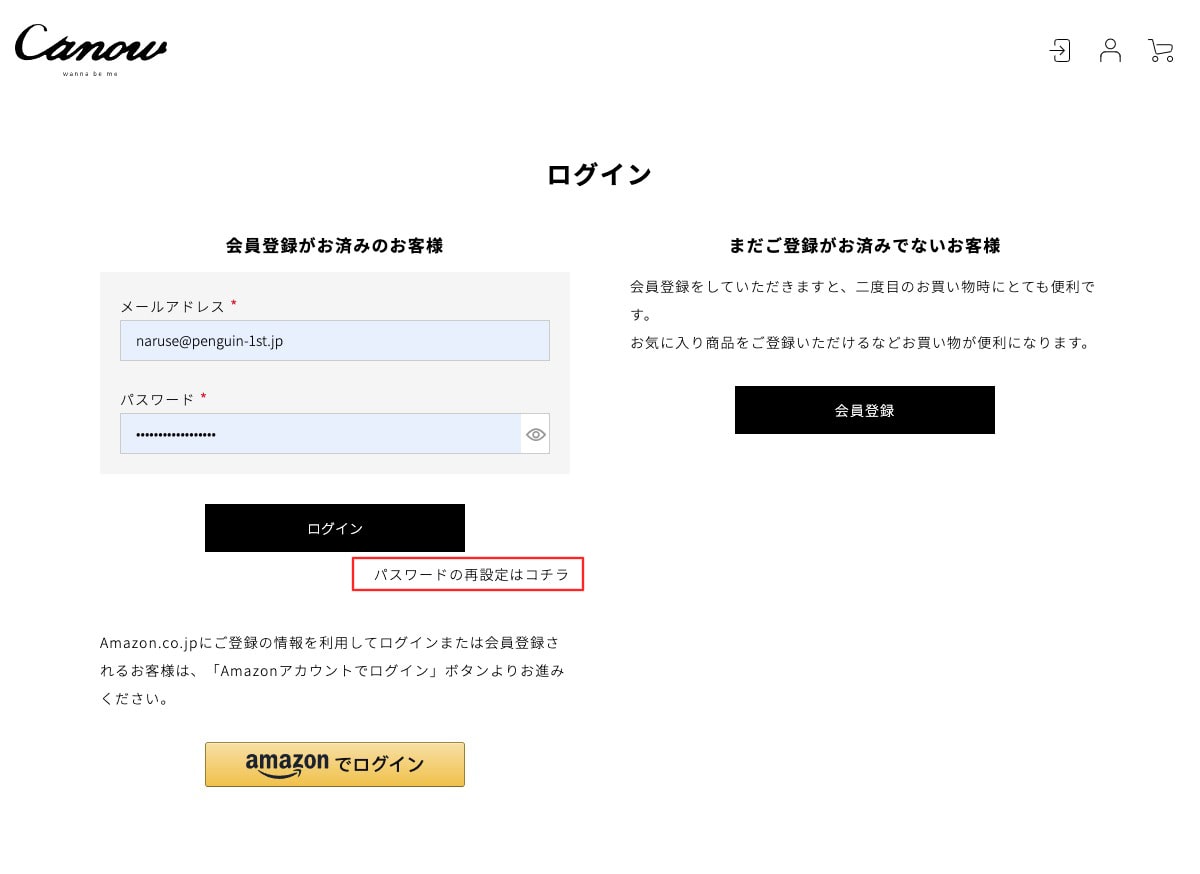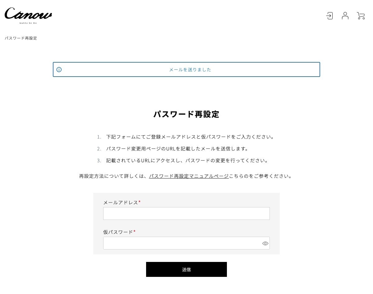 件名【Canow Online Store】パスワードのお問い合わせのメールが送信されます。